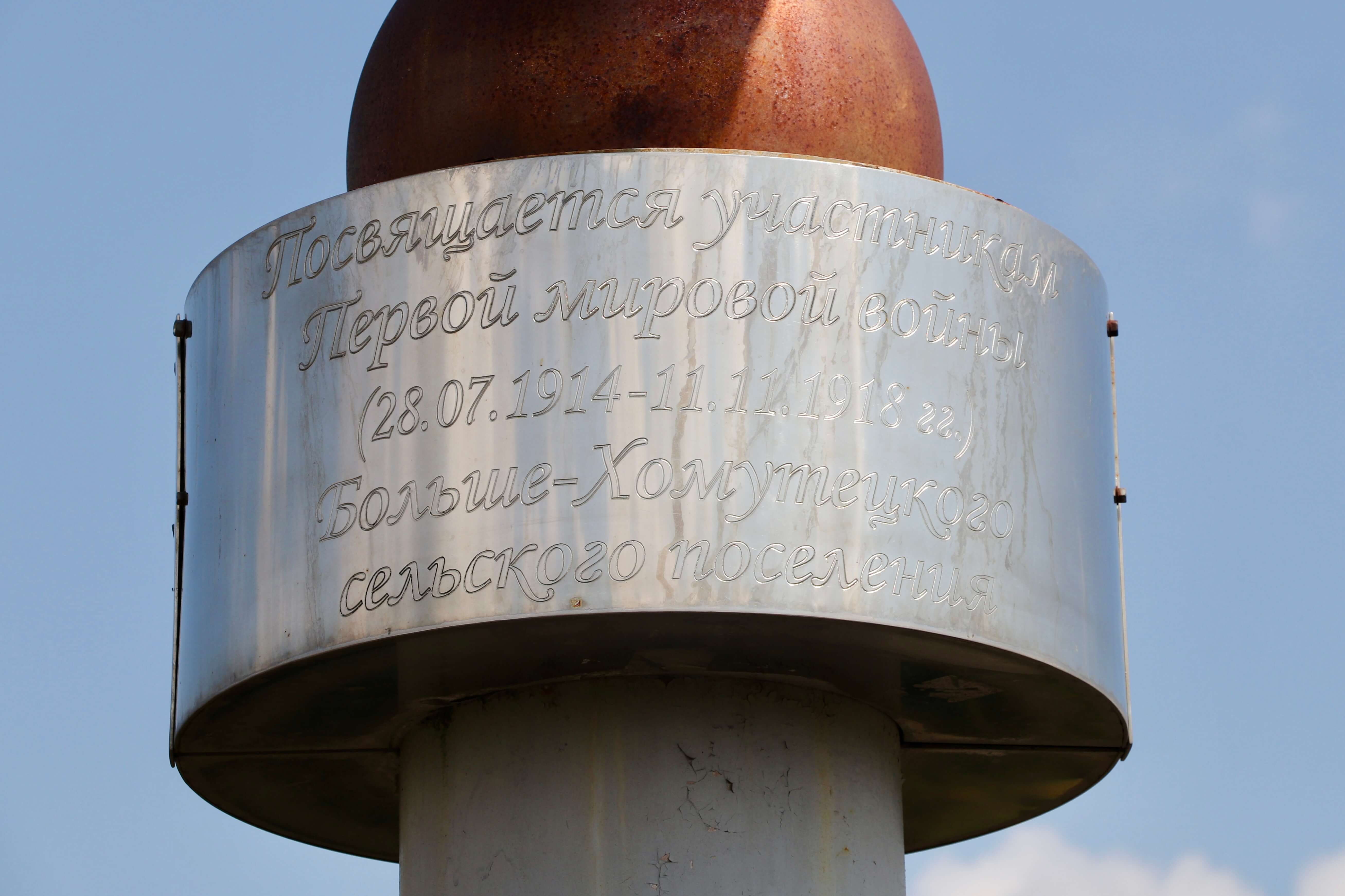 Памятник участникам Первой мировой войны 1914-1918 гг. был установлен в 2012 году по инициативе главы сельского поселения Больше-Хомутецкий сельсовет Ступина Николая Владимировича. Спонсорскую помощь оказал Воротников Вячеслав Иванович, бывший директор по управлению НЛМК.