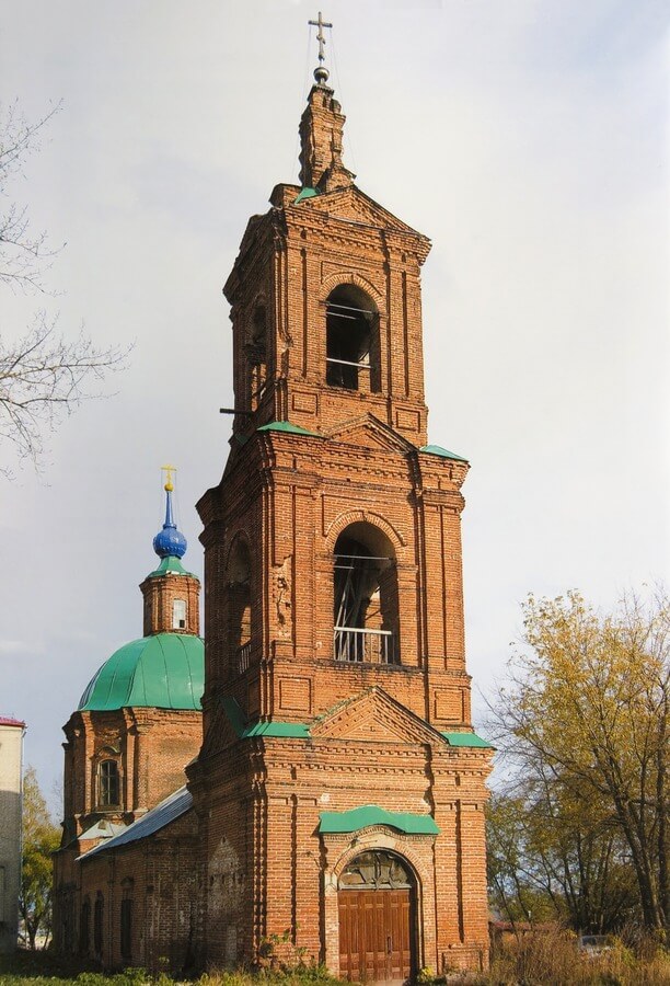 Собор построен в 1771 г. на средства прихожан с первоначально стоящей отдельно колокольней. В конце XVIII в. трапезная была удлинена до колокольни, тогда же были разобраны своды ее старой части и устроено плоское перекрытие. В 1846 г. с севера и юга к колокольне были пристроены каменные помещения кладовой и караульни.