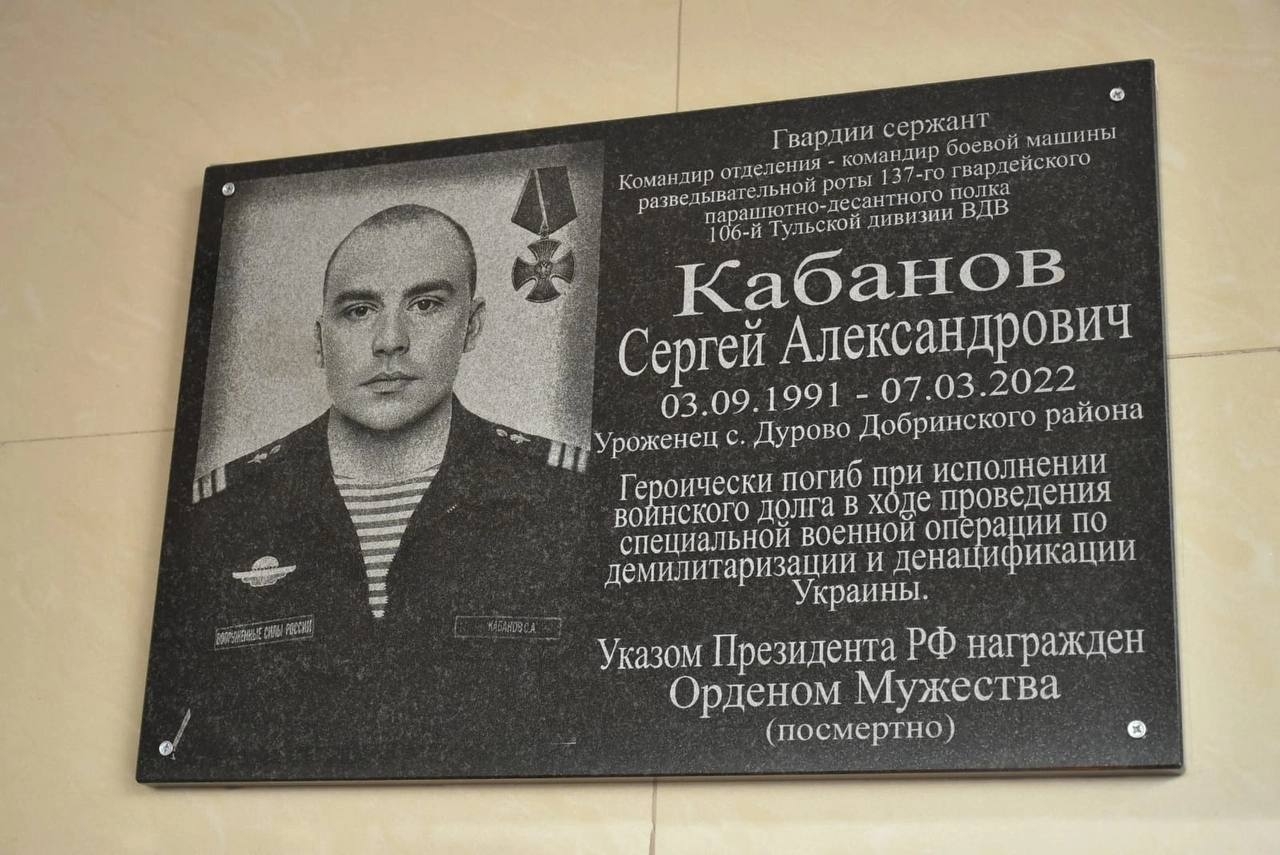 В феврале 2023 года на фасаде гимназии села Ольговка Добринского района была открыта мемориальная доска.
